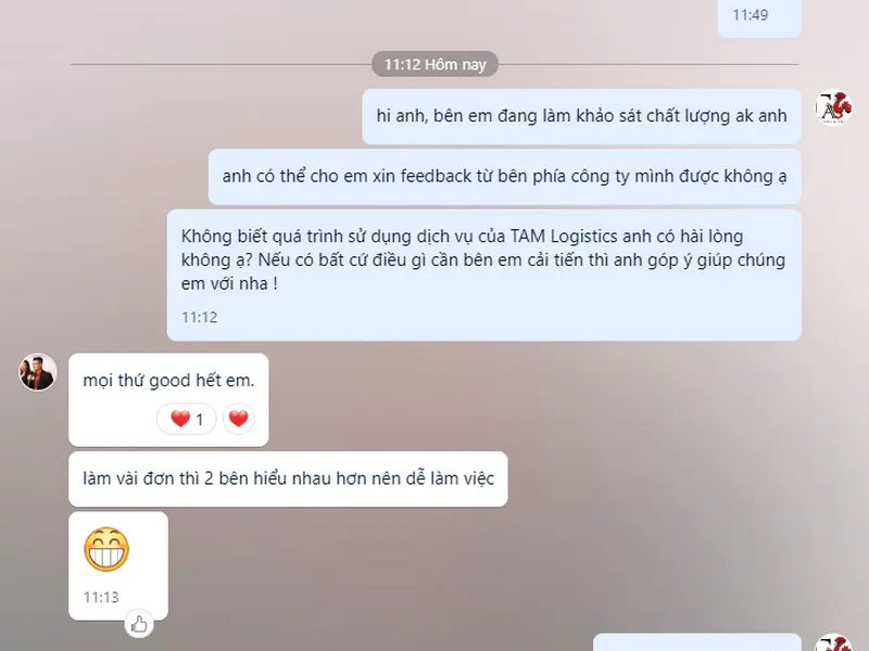 TAM Logistics lấy Khách hàng là cốt lõi, sự hài lòng của Khách hàng là tiêu chí hàng đầu.