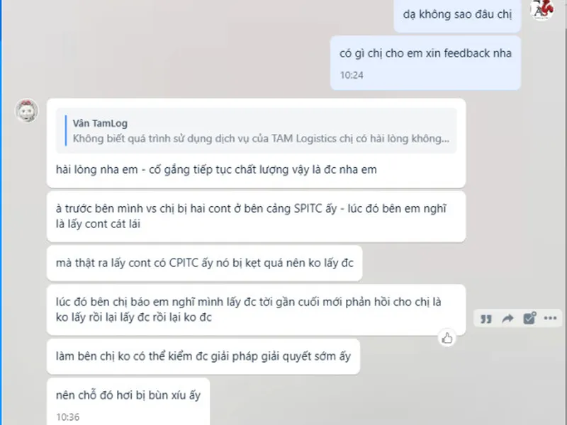 Chúng tôi cam kết phản hồi nhanh, xử lý nhanh chóng mọi vấn đề vướng mắc trong quá trình vận chuyển và xử lý hàng hóa.